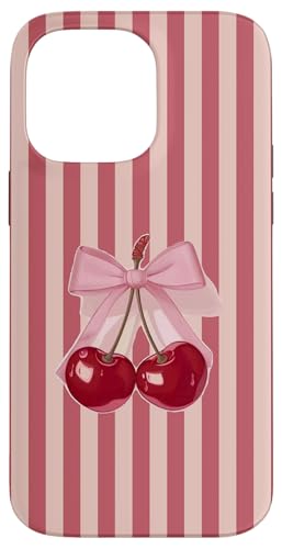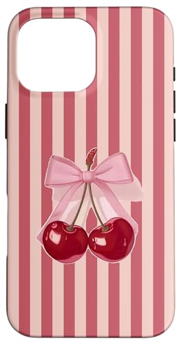 Cerises Cerises Mignonnes Noeud Rose Rouge rayé Motif Preppy Coque pour iPhone 16 Pro Max