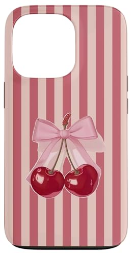 Cerises Cerises Mignonnes Noeud Rose Rouge rayé Motif Preppy Coque pour iPhone 13 Pro