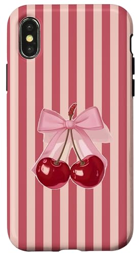 Cerises Cerises Mignonnes Noeud Rose Rouge rayé Motif Preppy Coque pour iPhone X/XS