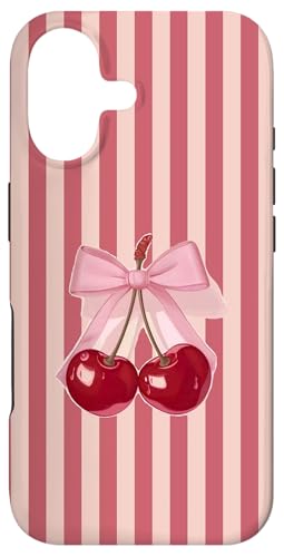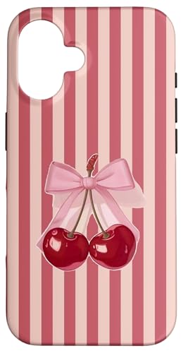 Cerises Cerises Mignonnes Noeud Rose Rouge rayé Motif Preppy Coque pour iPhone 16