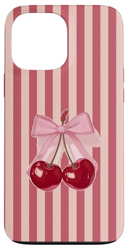 Cerises Cerises Mignonnes Noeud Rose Rouge rayé Motif Preppy Coque pour iPhone 13 Pro Max
