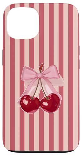 Cerises Cerises Mignonnes Noeud Rose Rouge rayé Motif Preppy Coque pour iPhone 13