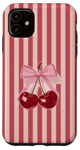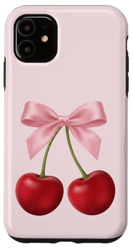 Vintage Cherry Esthétique Noeud Rose Kawaii Fruit Coque pour iPhone 11