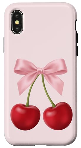 Vintage Cherry Esthétique Noeud Rose Kawaii Fruit Coque pour iPhone XR