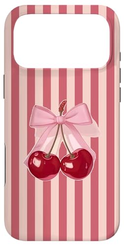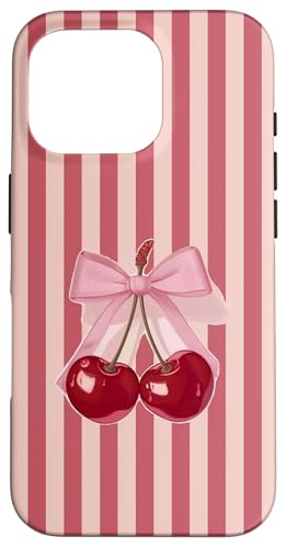 Cerises Cerises Mignonnes Noeud Rose Rouge rayé Motif Preppy Coque pour iPhone 16 Pro