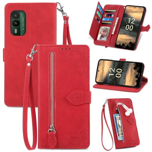 JZ Embossed Lotus Leather Wallet Cover pour Nokia XR21 Affaire avec Porte-Carte & Kickstand - Violet