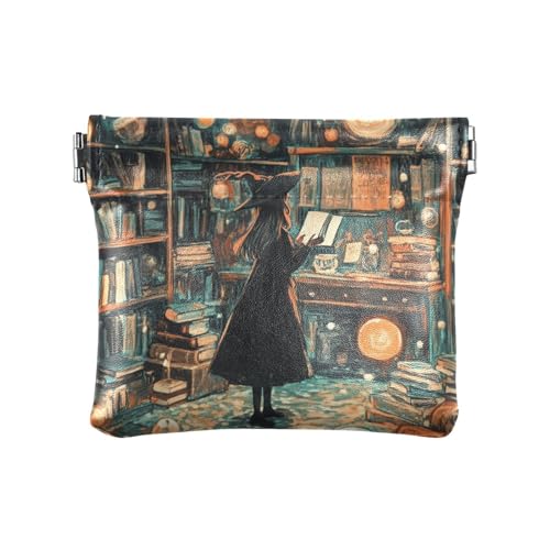 Mignon Chihuahua Chihuahua Rétro Baignoire Femmes Porte-monnaie Cuir PU Fermoir Mignon Portefeuille Porte-cartes pour Filles Femmes, Enchanted Book Nook Mystical Library Scholar, 1 size, Moderne