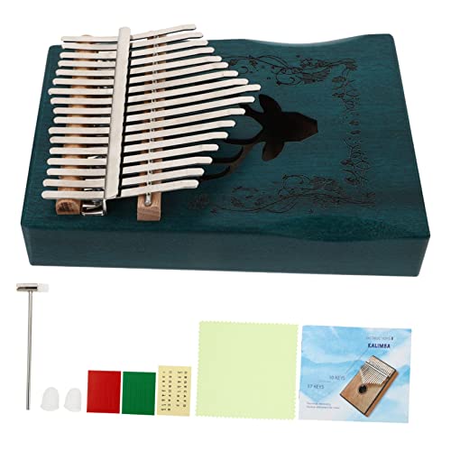 BESTonZON Kalimba Piano à Pouces 17 Tons en Bois de Pin Nord-américain Bleu, Instrument Portable pour Débutants et Adultes, Piano à Doigts Mbira Motif Cerf, pour Apprentissage Musical