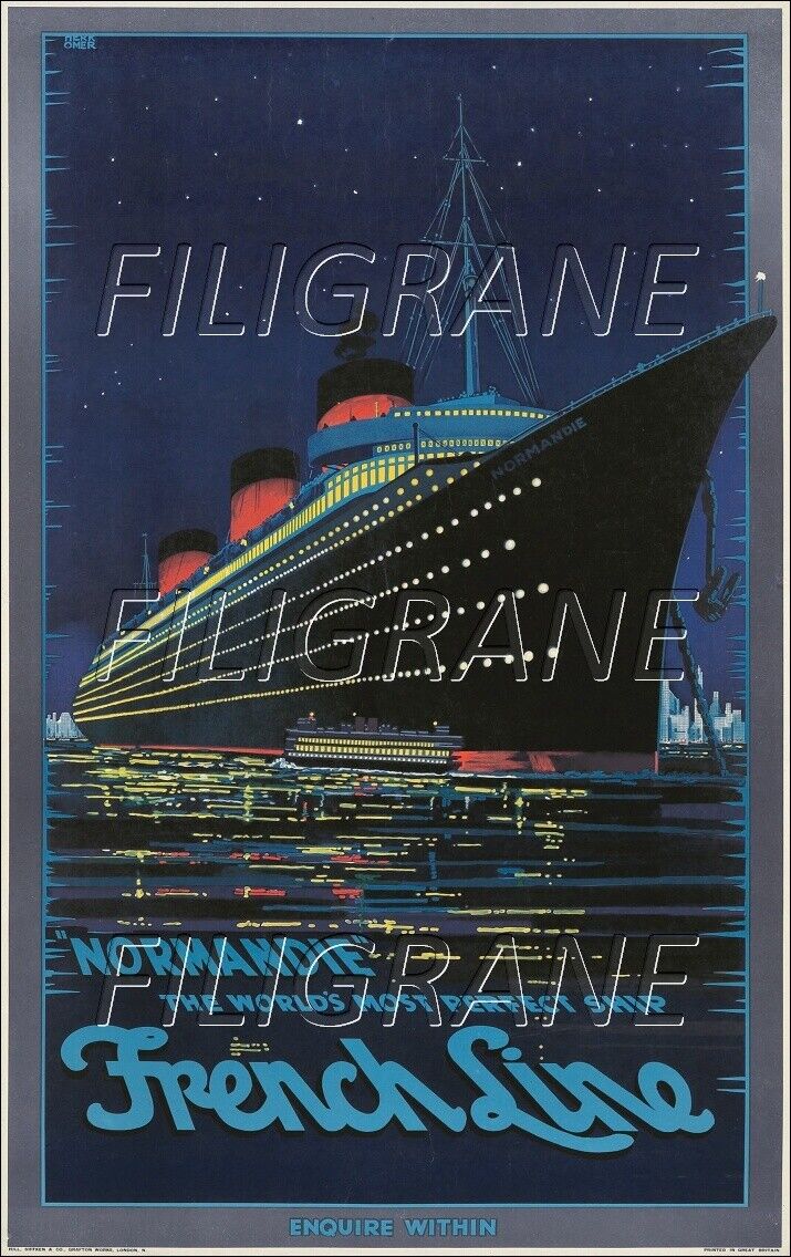 NORMANDIE PAQUEBOT Rf47 - POSTER HQ 40x60cm d'une AFFICHE VINTAGE