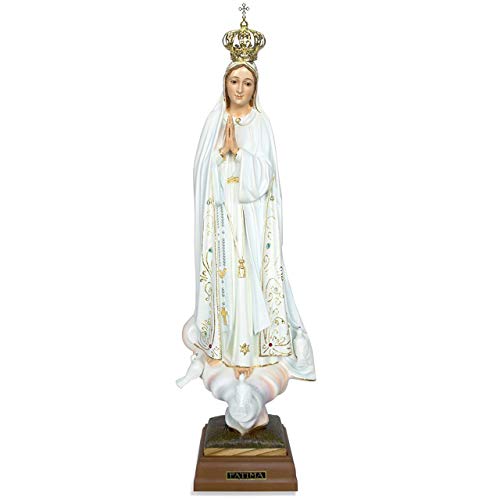 Toccare Statue Notre-Dame de Fatima Peinte à la Main – Fabriquée à Fatima (44,5 cm, Yeux Peints)