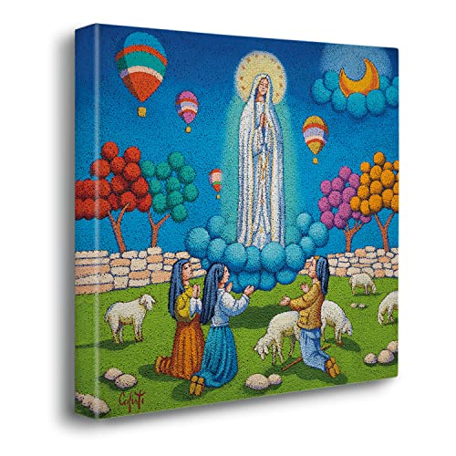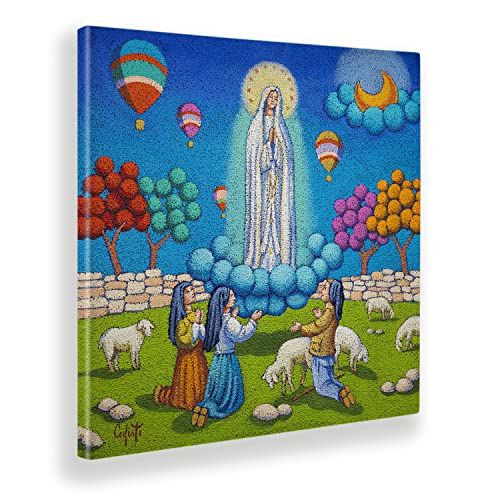Giallobus - Impression sur Toile - Stefano Calisti - Image Religieuse - Notre-Dame de Fatima - Toile Haute épaisseur qualité supérieure - 50x50 - Prêt à accrocher - Peintures Modernes pour la Maison