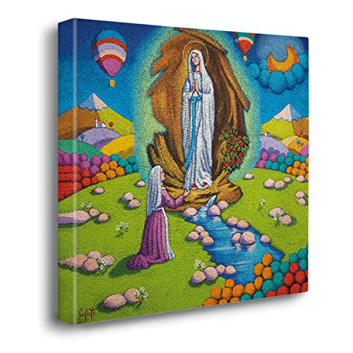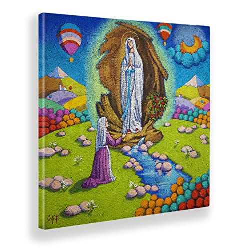 Giallobus - Impression sur Toile - Stefano Calisti - Image Religieuse - Notre-Dame de Lourdes - Toile Haute épaisseur qualité supérieure - 70x70 - Prêt à accrocher - Peintures Modernes pour la Maison