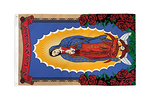 AZ FLAG - Drapeau Notre Dame de Guadeloupe Rose - 150x90 cm - Drapeau Nuestra Señora De Guadalupe 100% Polyester Avec Oeillets Métalliques Intégrés - Pavillon 110 g