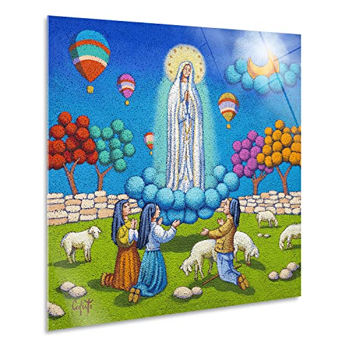 Giallobus - Impression sur Toile - Stefano Calisti - Image Religieuse - Notre-Dame de Fatima - Verre Acrylique - 50x50 - Prêt à accrocher - Peintures Modernes pour la Maison