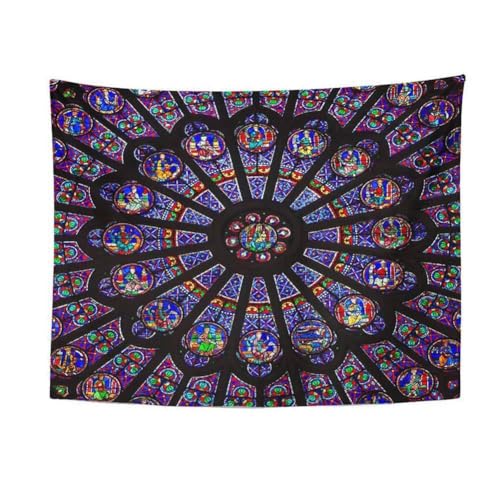 Nicknocks Tapisserie Cathédrale Notre-Dame Paris Home Tapisserie Rose Fenêtre Murale à Suspendre pour Salon