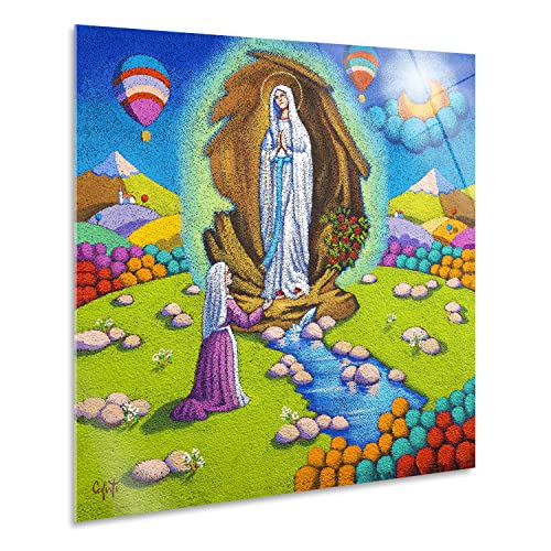 Giallobus - Impression sur Toile - Stefano Calisti - Image Religieuse - Notre-Dame de Lourdes - Verre Acrylique - 50x50 - Prêt à accrocher - Peintures Modernes pour la Maison