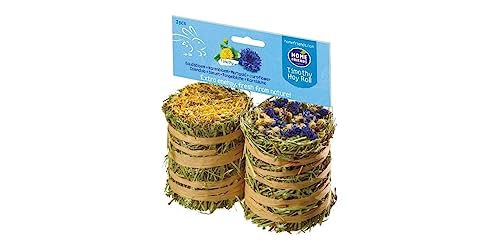 Homefriends Lot de 2 Rouleaux de Foin Timothy avec Calendula et Bleuet pour Lapins, Nains, Hamsters, cochons d'Inde et rongeurs (2 unités - 200 g) - Nourriture pour Lapins avec Fibres pour l'usure