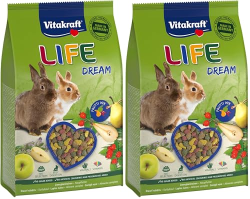 VITAKRAFT- Life Dream, Nourriture pour Lapins Nains, avec Poire, Pomme Et Cynorrhodon, Soutient La Digestion Et l'usure des Dents, sans Ajout De Sucre (1X 1,8Kg) (Lot de 2)