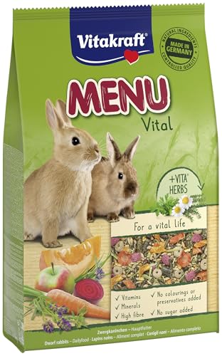 VITAKRAFT- Menu Vital, Nourriture pour Lapins Nains, Aux Herbes Et Légumes, Riche en Fibres Brutes, sans Ajout De Sucre (1X 1Kg) (Lot de 2)