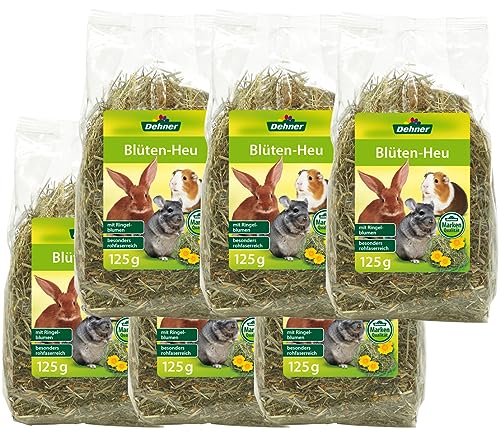 Dehner 6 x 125 g - Mélange de Fleurs Riches en Fibres brutes - pour Lapins Nains, rongeurs, Foin et Calendula - 6 x 125 g