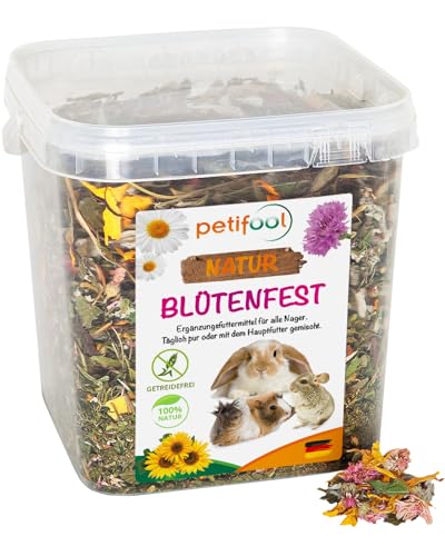 petifool Blütenfest 380 g – Complément alimentaire pour rongeurs – Nourriture naturelle pour rongeurs pour lapins, cochons d'Inde, hamsters, chinchilla et plus encore – Sans additifs artificiels – 100