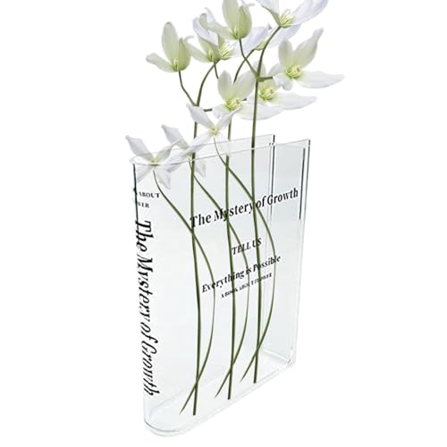 Vase en Forme de Livre Transparent | Vase à Fleurs en Forme de Livre | Vase Moderne en Acrylique Transparent | Saveur Artistique et culturelle du Vase à Fleurs | Nouveau Vase décoratif pour