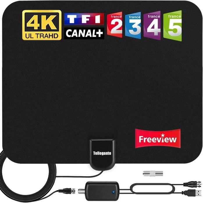 2024 Nouvelle Antenne TV Intérieur Puissante TNT HD Antenne HDTV avec Amplicateur de Signal Amélioré Jusquà 480kmpour 1080P 4K