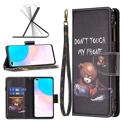 LMFULM® Étui pour Honor 50 Lite/Huawei Nova 8i (6,67 Pouces) PU Cuir Couverture Housse Sac à Main à Glissière Motif Ours Fou Stent Fonction Magnétique Coque Flip Cuir