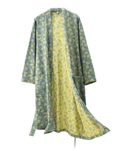 Peignoir Yukata en Gaze De Coton Jacquard Respirante pour Femme, Nuisette Douce Et Légère, Vêtement De Nuit Confortable Green L