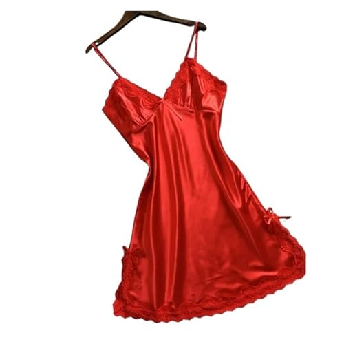 Ensemble Pyjama en Satin, Lingerie en Dentelle Patchwork, Nuisette, Robe de mariée en Soie, vêtements de Nuit, Nuisette pour Femme, Nuisettes Sexy (Red XXL)