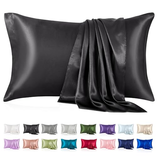 Lot de 2 taies d'oreiller en Satin Soyeux pour Cheveux et Peau, avec Fermeture à enveloppe, Cadeau pour Homme et Femme, 50,8 x 76,2 cm, Noir