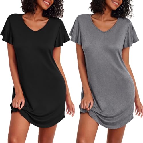Ekouaer Chemises de Nuit à Manches Courtes pour Femmes 2 pièces Chemise de Nuit Mignonne d'été Noir + léopard XXL