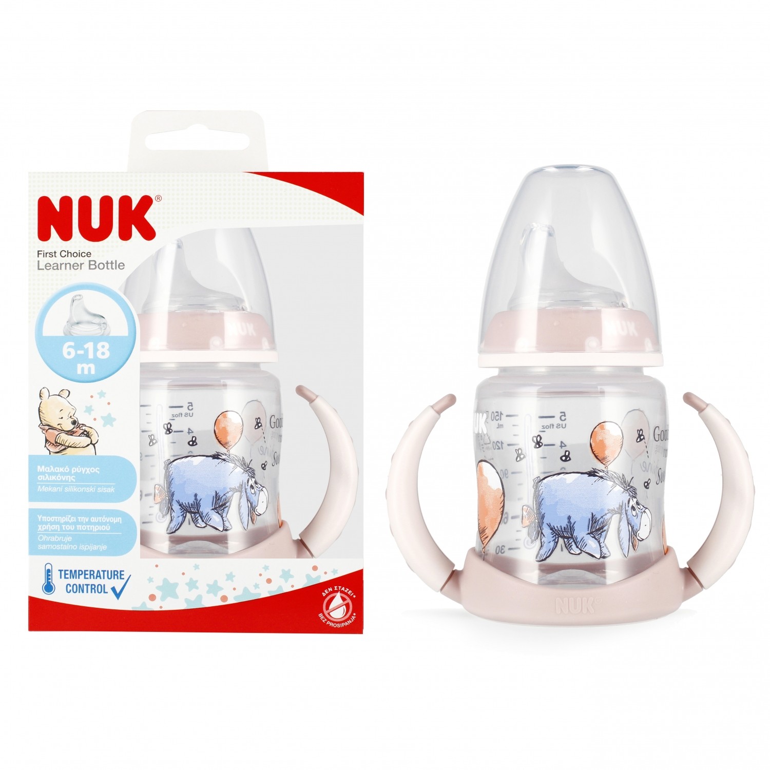 4008600441328 NUK Butelka 150 ml 6m z uchwytem First Choice Osiołek różowa 1074