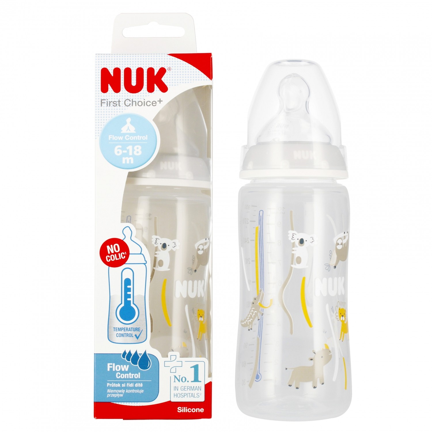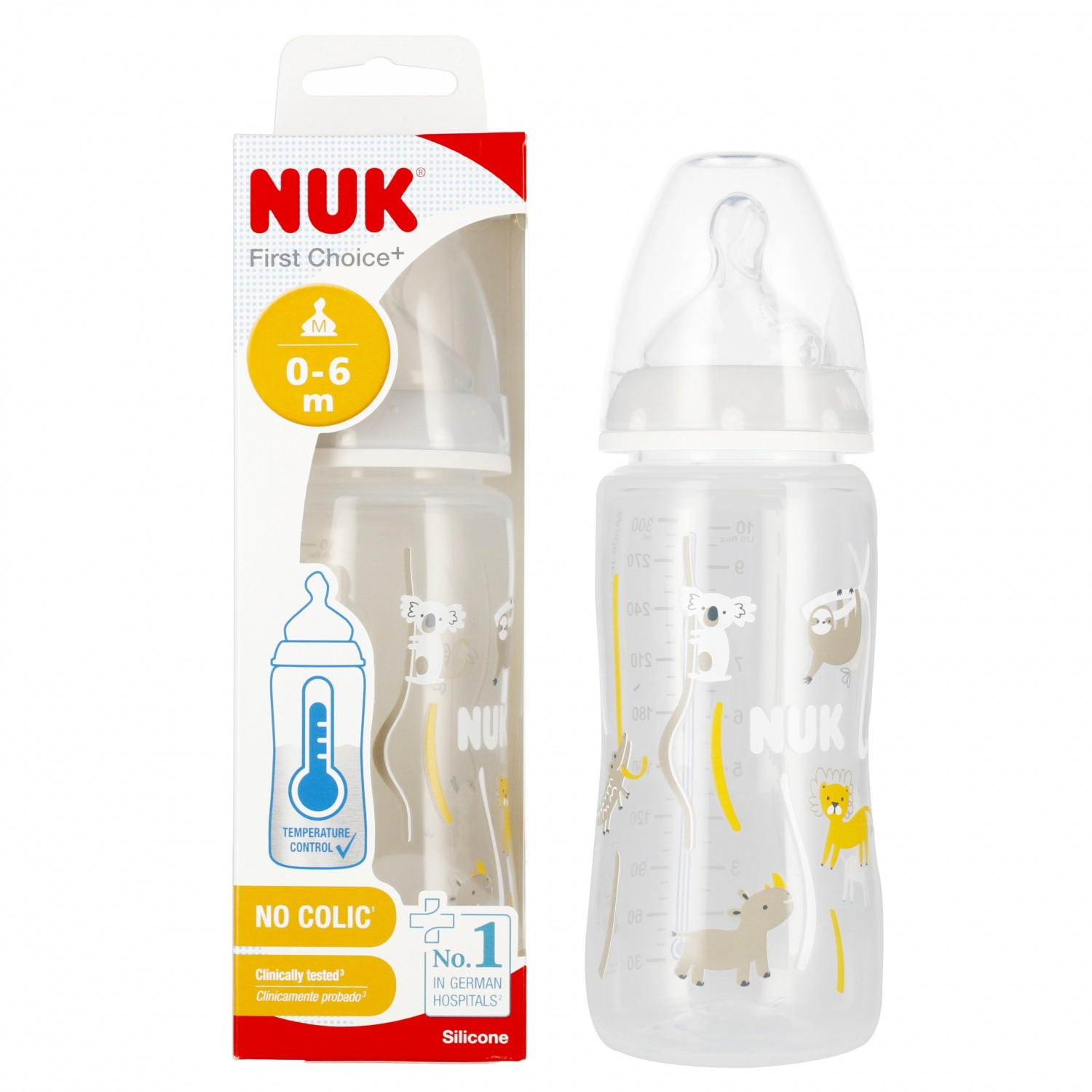 NUK First Choice Biberon | 3+ mois | 300 ml | Biberon anti-colique | PP | Indicateur de contrôle de la température | Koala | Lot de 1