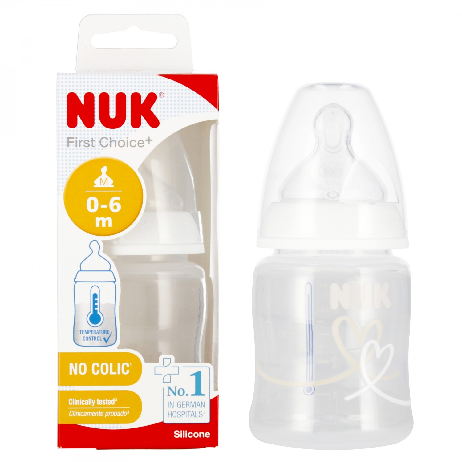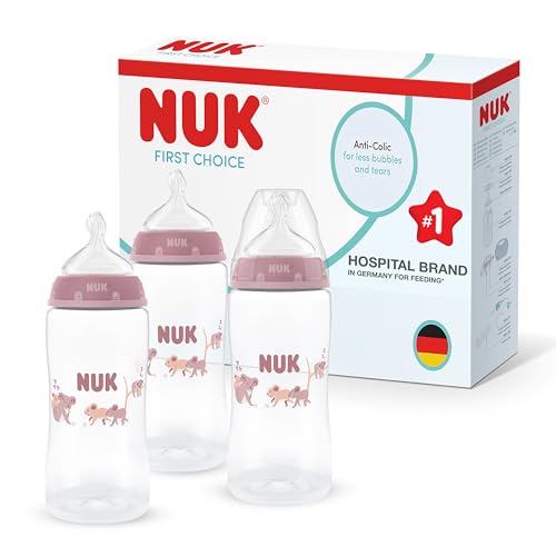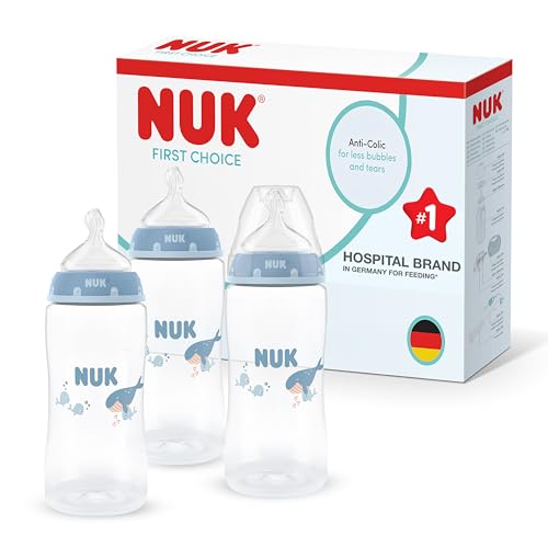 NUK First Choice Biberon Tétines | 3+ Mois | Tétines Anti-Coliques | Silicone | Moyen | Lot de 2