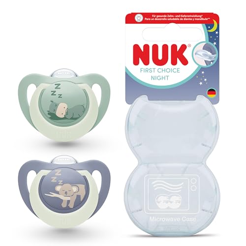NUK First Choice Night Sucettes pour bébé | 18-36 mois | Sucettes orthodontiques phosphorescentes | Apaise 99% des bébés** | Hippopotame/Koala | Lot de 2