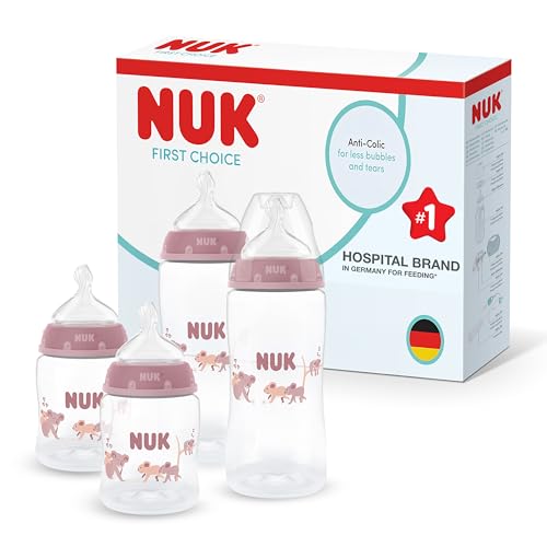 NUK Perfect Start First Choice+ set de biberons | 0-6 mois | 4 biberons anti-coliques, 1 tétine, 1 goupillon et plus encore | Lot de 10 pièces