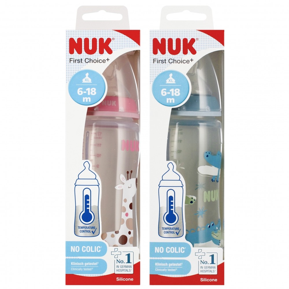 NUK First Choice Biberon Tétines | 6+ Mois | Tétines Anti-Colique | Silicone | Contrôle du Débit | 2 Pièces