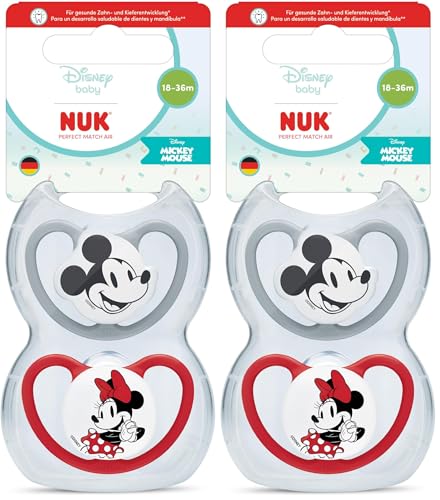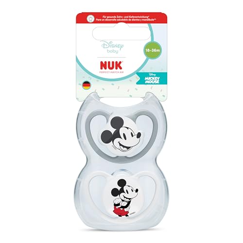 NUK Perfect Match Air Sucettes pour bébé | 18-36 mois | Sucettes orthodontiques favorisant l’aération et prévenant l’irritation | 95% d’acceptation par les bébés** | Disney Mickey Mouse | 2 unités
