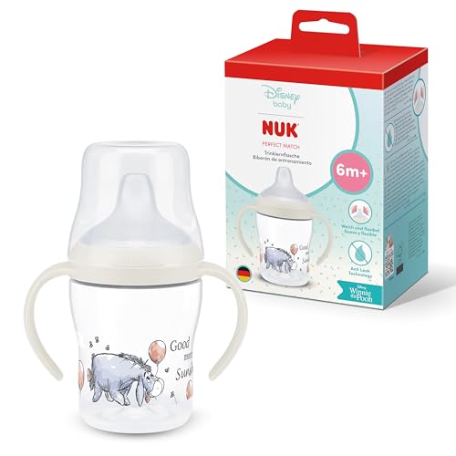 NUK Perfect Match Nuit Tasse d’apprentissage | 6+ mois | 150 ml | Tasse anti-fuite pour bébés | Poignées antidérapantes | Brille dans le noir | Disney Bourriquet | Lot de 1