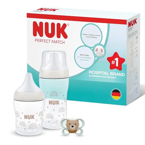 NUK Perfect Match Set de biberons| 0-6+ mois | S’adapte au palais de bébé | 4 biberons anti-coliques, tétine, goupillon et plus encore | 9 pièces