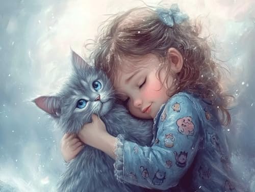 Diamond Painting Animal Diamond Painting Enfant Chat 5D DIY Ronde Peinture Diamant Strass Art Point de Croix Kit Broderie Numero D'art pour Décoration Murale Maison, Cadeau Femme 80x120cm, Cod-676