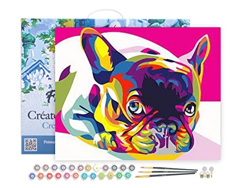 Figured'Art Peinture par Numéro Adulte avec Cadre Bulldog Pop Art - Activité Manuelle Kit de Loisir Créatif DIY Numéro d'Art Complet - 40x50cm toile tendue sur châssis