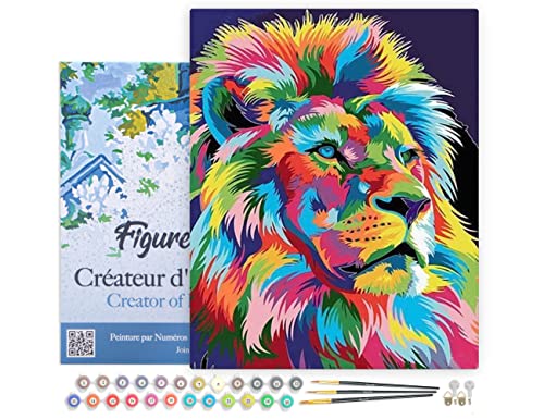 Figured'Art Peinture par Numéro Adulte Lion Pop Art - Activité Manuelle Kit de Loisir Créatif DIY Numéro d'Art Complet - 40x50cm avec châssis en bois à monter
