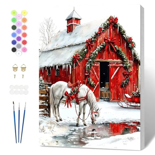 Fumupe Peinture Numero Noël Adulte avec Cadre, Peinture par Numero Cheval, Peinture Acrylique Numéro d'art avec 3 Pinceaux, Loisirs Créatifs Adultes Activité Manuelle Décoration de Noël, 20x30cm