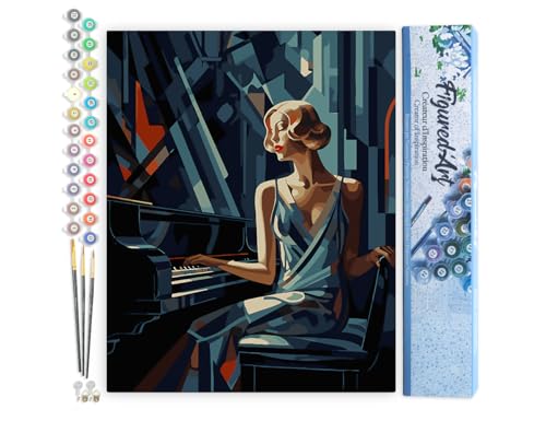 Figured'Art Peinture par Numéro Adulte Pianiste Art Déco - Activité Manuelle Kit de Loisir Créatif DIY Numéro d'Art Complet - 40x50cm sans châssis en bois