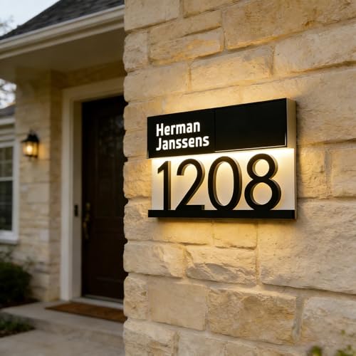 BeNsil Plaque de Maison Solaire Personnalisée,Numero de Maison Exterieur Solaire,Numéros De Maison, Adresses,Noms De Rue - LED Moderne pour Les Maisons, Les Hôtels.