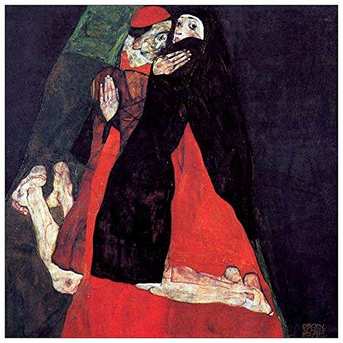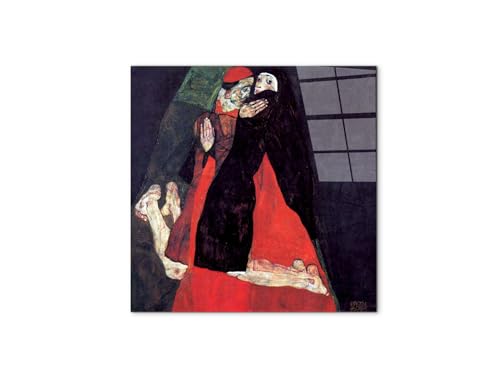 Artopweb EarthArt Materic 58 × 58 cm Tableau matériel 3D effet pinceau léger prêt à accrocher écologique - Cardinal and Nun or The caress de Schiele Egon