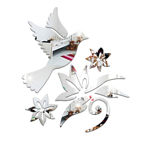 Hemobllo Sticker Mural Acrylique Miroir Argenté Motifs Colombe Paix Et Branche Olivier Décoration Murale Pour Salon Chambre Et Nurserie Facile à Poser Retirer Surface Réfléchissante