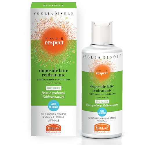 Helan, Vogliadisole Respect, Lait Après-Soleil Hydratant - Crème Après-Soleil Rafraîchissante pour la Peau du Visage et du Corps, à l'Acide Hyaluronique, à l'Huile de Framboise et de Pastèque et à la Vitamine E - 200 ml